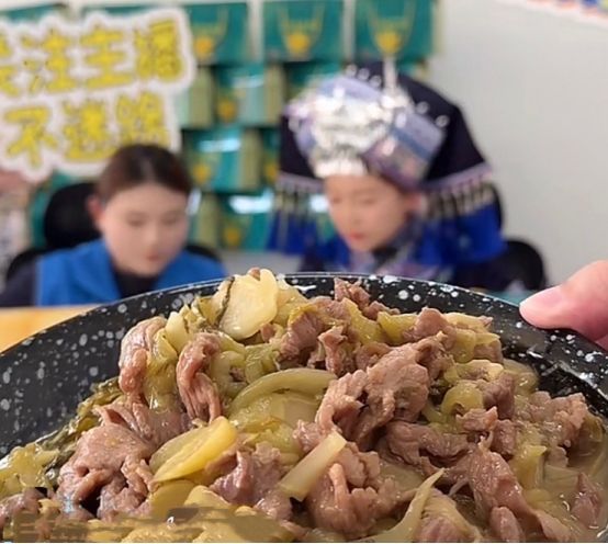 “家人们看过来!刚从冷藏库取出的酸菜,配着村里散养的牛肉炒,这香味隔着屏幕都能闻到!”直播间里,镜头特写食材的脆嫩与油光,开启了“感官营销”技巧的实操。