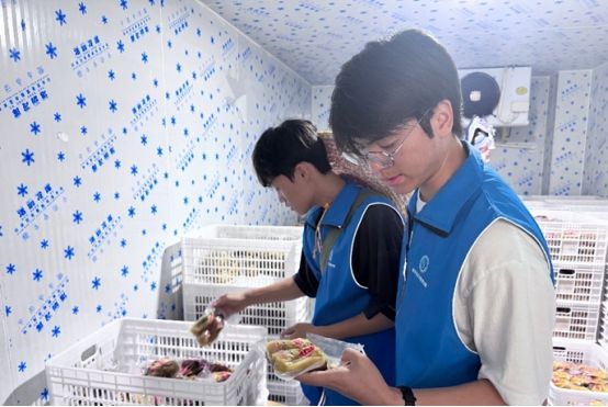 走进成品冷藏库,低温环境下整齐的酸菜包装映入眼帘。从菜园到冷库,每个环节都是直播带货的“卖点”。“从采摘到冷藏的保鲜时效是多少?销售渠道有哪些?”学生们围着宝西村支书追问,这是他们结合专业课程设计的调研重点,旨在深入了解产品信息,为后续的营销推广打下基础。
