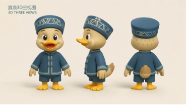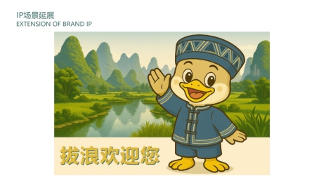 经过讨论,促进团成员将珍珠鸭IP形象命名为“浪浪”,其设计理念以壮族服饰纹样与喀斯特山水为核心,通过拟人化设计手法,传递生态养殖理念,配套开发平面三视图、3D模型、动态表情包及场景应用矩阵。在成果汇报会上,珍珠鸭的IP形象得到了拔浪村经济合作社负责人的认可与赞扬,他表示珍珠鸭“浪浪”的IP形象不仅是珍珠鸭的生动名片,也是山清水秀的拔浪村的形象代言。