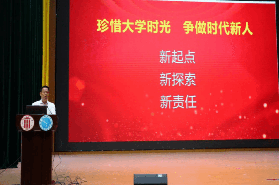 广西信息职业技术学院副院长,数字经济与管理学院党总支书记、院长李国助代表全院师生向2025级新同学表示热烈欢迎和祝贺,他详细介绍了学校基本情况和学院办学特色,并以《珍惜大学时光 争做时代新人》为题为全体新生讲授了入学第一课,他在讲话中与同学们分享了自己的思考,用“新起点、新探索、新责任”作为关键词,从“树立理想信念、厚植家国情怀”“培养学习习惯、提升综合素养”“恪守纪律底线、强化责任担当”“保持身心健康,实现全面发展”等方面对新生提出殷切期望,鼓励大家要珍惜大学时光,紧握数字经济时代脉搏,怀感恩之心、做有用之人、成栋梁之材,努力成为堪当民族复兴重任的时代新人。