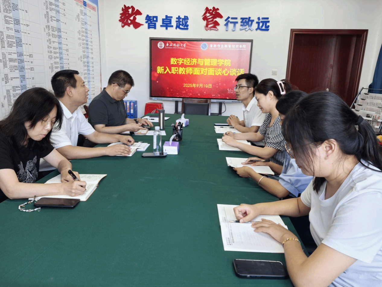 数字经济与管理学院 蒋春春 报道 教师是立教之本,兴教之源。为更好地了解学院新进教师的工作状态、思想动态,帮助他们尽快适应新环境,促进教师成长与发展,9月10日,数字经济与管理学院开展“我与青年面对面”系列活动之——新进教师面对面谈心谈话,学院领导及近两年新入职教师参加了此次活动。