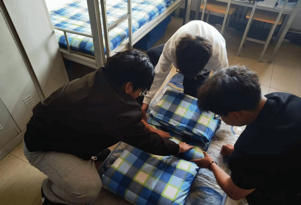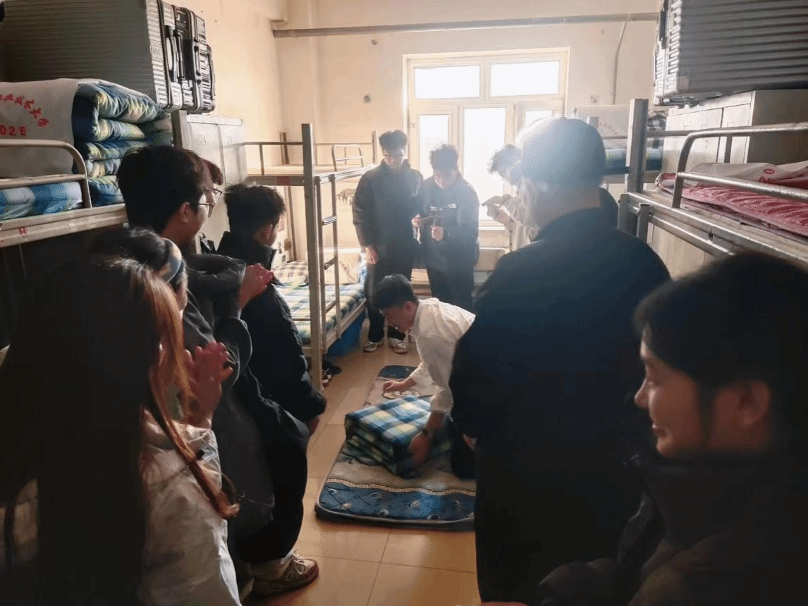 哈职大退伍同学示范“标准化”被子叠法