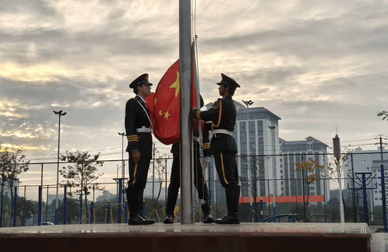 学院升旗仪式现场(陆园朗 胡洁/摄)