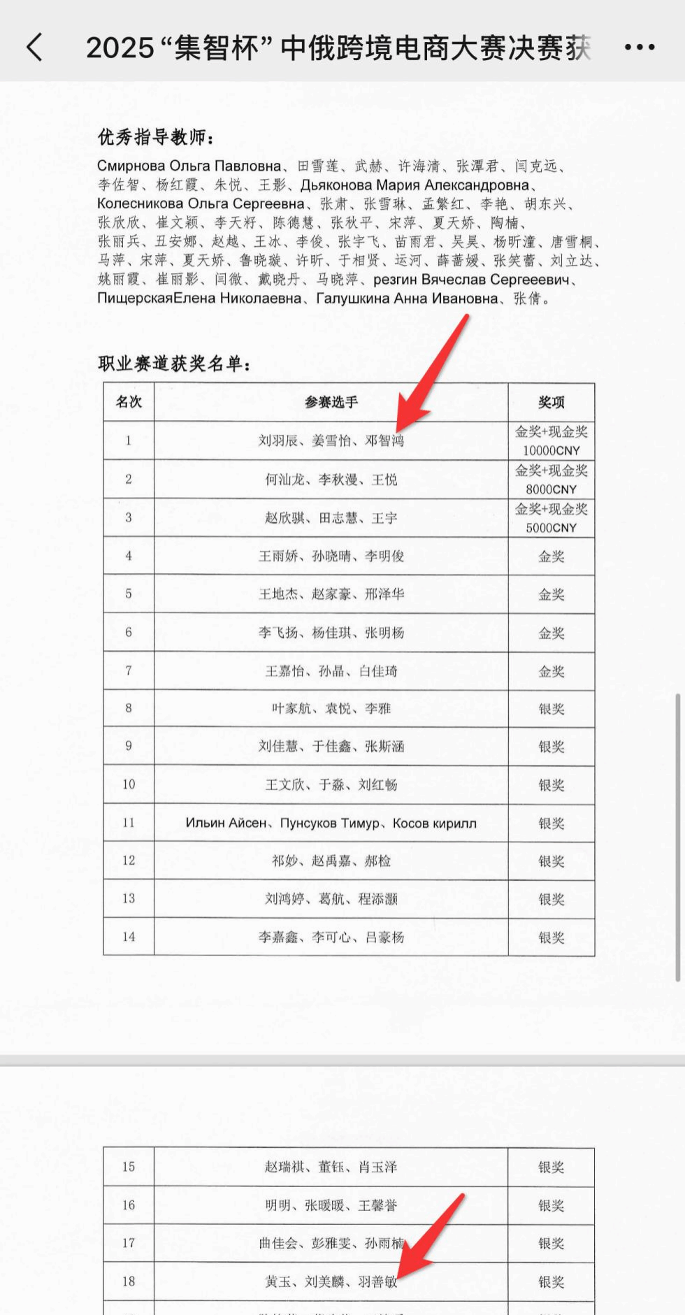 羽善敏在2025年“集智杯”中俄跨境电商大赛职业赛道中,表现稳健、方案完整,荣获银奖。