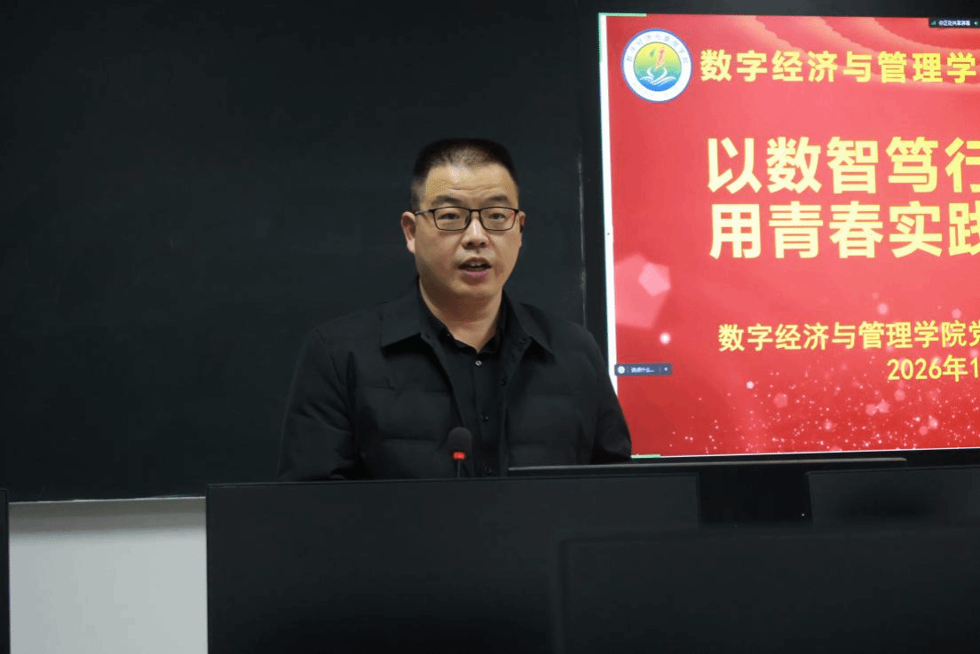 数字经济与管理学院 谢姗姗 报道 1月5日,数字经济与管理学院组织全院师生在室内开展升旗仪式,学院党总支副书记顾玉俊讲授国旗下的思政课,2025级大数据与会计2班文艺委员黄小婷担任主持。