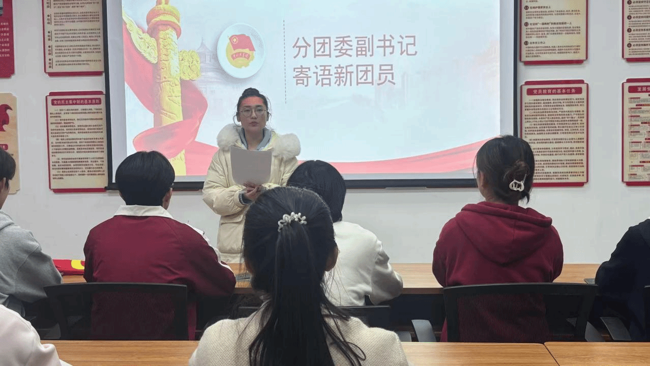 仪式在庄严的国歌声中拉开帷幕,学院分团委副书记欧淑玲宣读2025年新发展团员名单,向新团员表示热烈祝贺并寄予殷切期望。勉励大家牢记入团初心、坚定理想信念,厚植家国情怀,立足专业、勤学本领,勇担使命、锤炼品德,在服务奉献中绽放青春光彩,践行团员的责任与担当。党员代表周玉老师带领学习《团章》,引导新团员明晰身份责任。