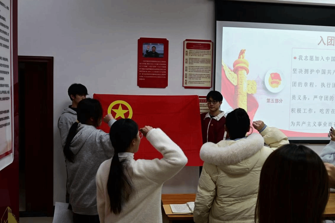 会上,学院为新团员颁发团员证、佩戴团徽。全体新团员面向团旗高举右拳庄严宣誓,铿锵誓言是对团组织的忠诚承诺与青春告白。