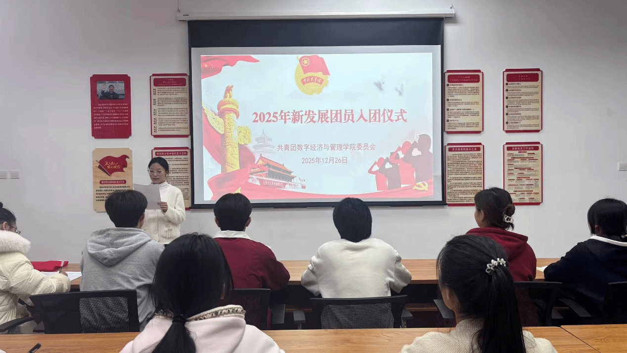数字经济与管理学院 周玉 报道 为持续深化共青团组织建设、筑牢青年学生理想信念根基,近日,数字经济与管理学院分团委举行2025年新团员入团仪式。