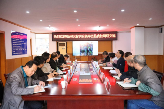 梧州开放大学李雯 报道 为加强校际之间沟通交流,深化两校合作与发展,12月27日下午,梧州职业学院党委书记时伟一行到梧州开放大学开展调研交流,梧州开放大学党总支书记、校长聂振传陪同调研。