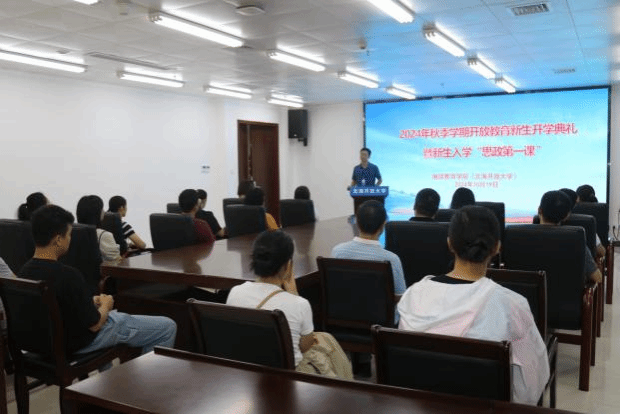 北海职业学院(北海开放大学) 洪基俊报道 秋光为序,筑梦启航。10月18日,北海职业学院(北海开放大学)在校本部22号楼1204室举行2024年秋季学期开放教育新生开学典礼暨新生入学“思政第一课”。学校师生代表齐聚一堂,共同见证这一时刻。