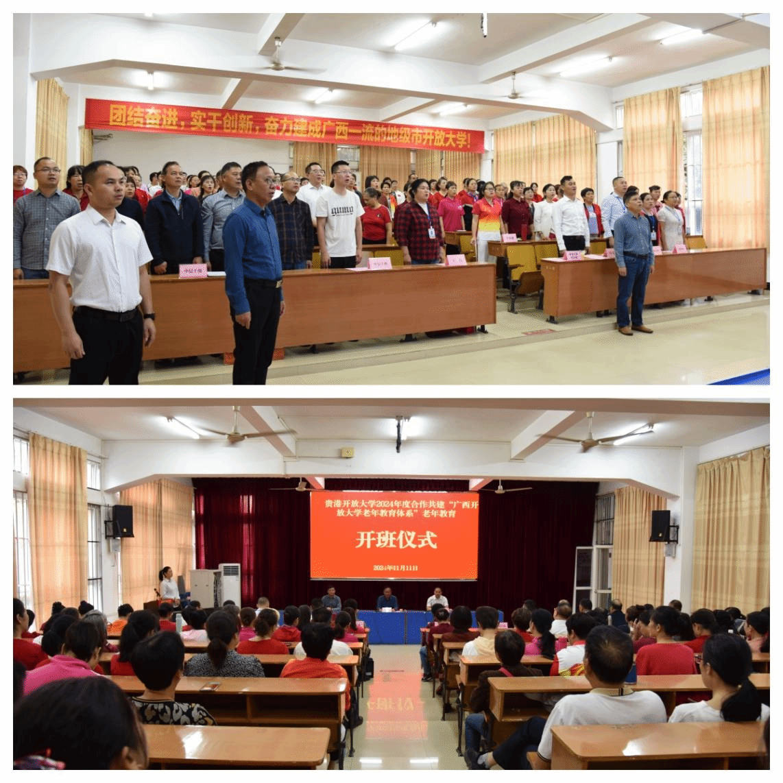 贵港开放大学 朱佳龙报道 11月11日上午,贵港开放大学2024年度合作共建“广西开放大学老年教育体系”老年教育正式开班,来自辖区的老年人齐聚一堂。党组书记、校长管升起同志和港北区委组织部副部长黄壮国同志出席并作讲话。会议由贵港开放大学党组成员、副校长袁子鹏主持会议。