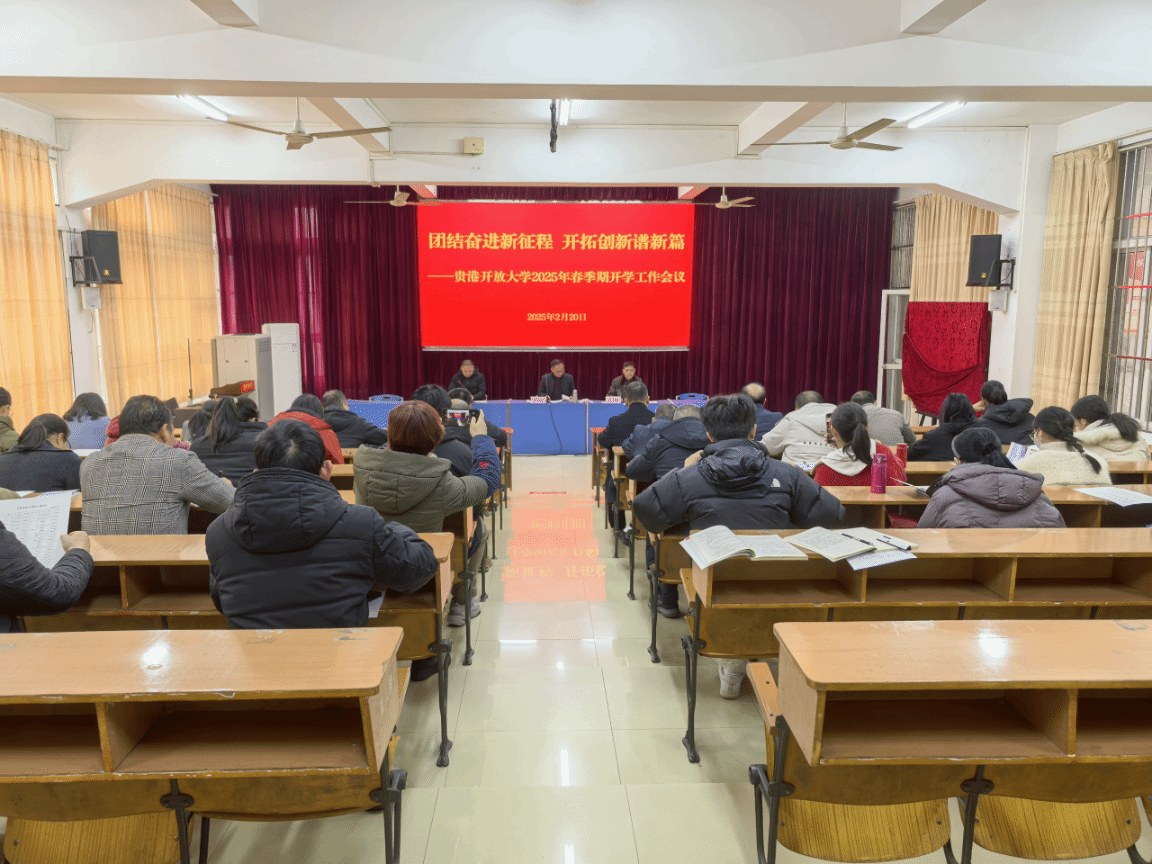 贵港开放大学 梁惠进报道 春回大地,万物复苏,2月20日上午,贵港开放大学2025年春季学期开学工作会议在一楼多媒体教室举行。校领导管升起、袁子鹏、谭照宽出席会议,全体教职工参加会议。会议由校党组成员、副校长袁子鹏主持。