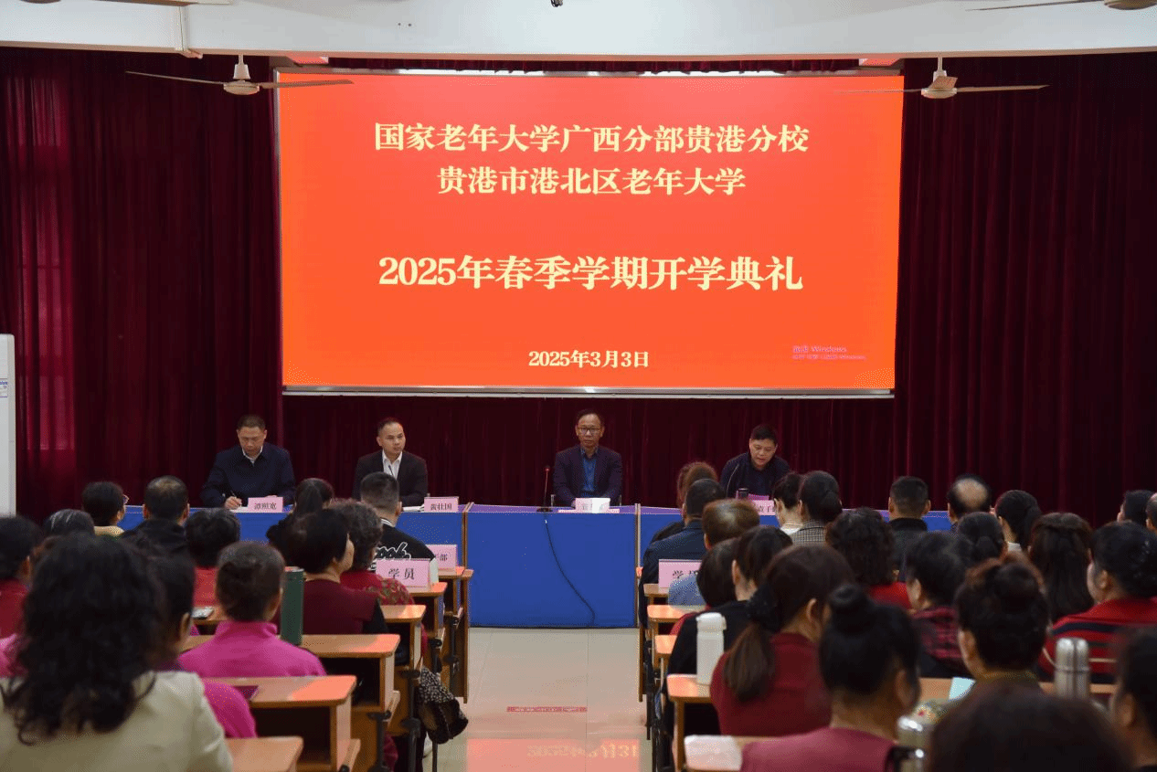 贵港开放大学 赵妍报道 3月3日,国家老年大学广西分部贵港分校、贵港市港北区老年大学举行2025年春季学期开学典礼。贵港开放大学党组书记、校长管升起,贵港市港北区委组织部副部长黄壮国,贵港开放大学党组成员、副校长袁子鹏,贵港开放大学副校长谭照宽,贵港市港北区老年大学副校长王玫,贵港开放大学教职工及2025年春季老年教育学生代表参加了开学典礼。