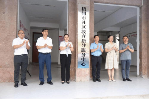 梧州开放大学 黎文华 报道 7月16日上午,梧州开放大学举行“梧州市社区教育指导服务中心”揭牌仪式。广西社区教育指导服务中心执行主任邓艳葵代表广西社区教育服务指导中心讲话,与广西社区教育指导服务中心副主任孙世虹分别作创优提质大讲堂授课,梧州市教育局副局长王剑彪宣读了《关于依托梧州开放大学设立梧州市社区教育指导服务中心的批复函》。梧州开放大学党总支书记、校长聂振传主持揭牌仪式并致辞。梧州职业学院党委书记时伟、相关中职学校领导、社区教育先进工作者代表、师生代表和全体教职工约40人参加揭牌仪式。