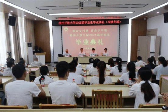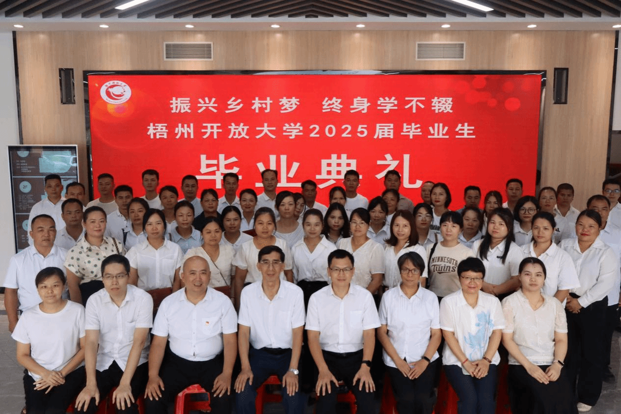 梧州开放大学 黎文华 报道 “作为开放大学的学子,我们中有在职人员、有家庭主妇、有退伍军人,每个人都在工作与家庭的夹缝中挤出时间坚持完成学业,正是这份坚持,让我们收获了丰富的知识和强大的内心。”来自23春开放教育行政管理本科班的胡庆华同学在毕业典礼上拿着毕业证书激动地说道。7月23日至30日,梧州开放大学相继在岑溪市、藤县、校本部(含辅警专场)、蒙山县举行了五场2025届毕业生毕业典礼,梧州开放大学开放教育本科班、单考单招专科班、村“两委”中专班共387名毕业生顺利拿到了毕业证书。