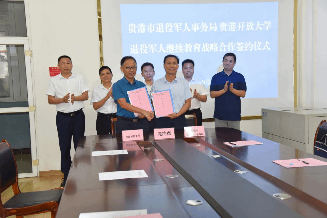贵港开放大学 赵妍 报道 9月9日上午,贵港开放大学与贵港市退役军人事务局战略合作签约揭牌仪式在贵港开放大学举行。广西开放大学副校长黄远鸣、开放教育学院院长江祖辉,贵港市退役军人事务局党组书记、局长宁一松和贵港开放大学党支部书记、校长管升起参加。黄远鸣、宁一松、管升起共同为“贵港市退役军人继续教育基地”揭牌,贵港市退役军人事务局党组成员、副局长韦艺主持仪式。