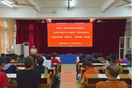 贵港开放大学 陈宇 报道 为弘扬中华优秀传统文化,推动贵港粤剧的传承与发展, 9月22日上午,由贵港开放大学与广西社区教育合作共建项目“跨代际非遗传承人训练营”系列培训第四期——贵港粤剧之粤曲唱念,在贵港开放大学综合楼成功举办。此次培训面向贵港市各社区粤剧爱好的居民群众,不限年龄,吸引了100多名粤剧爱好者踊跃参与。
