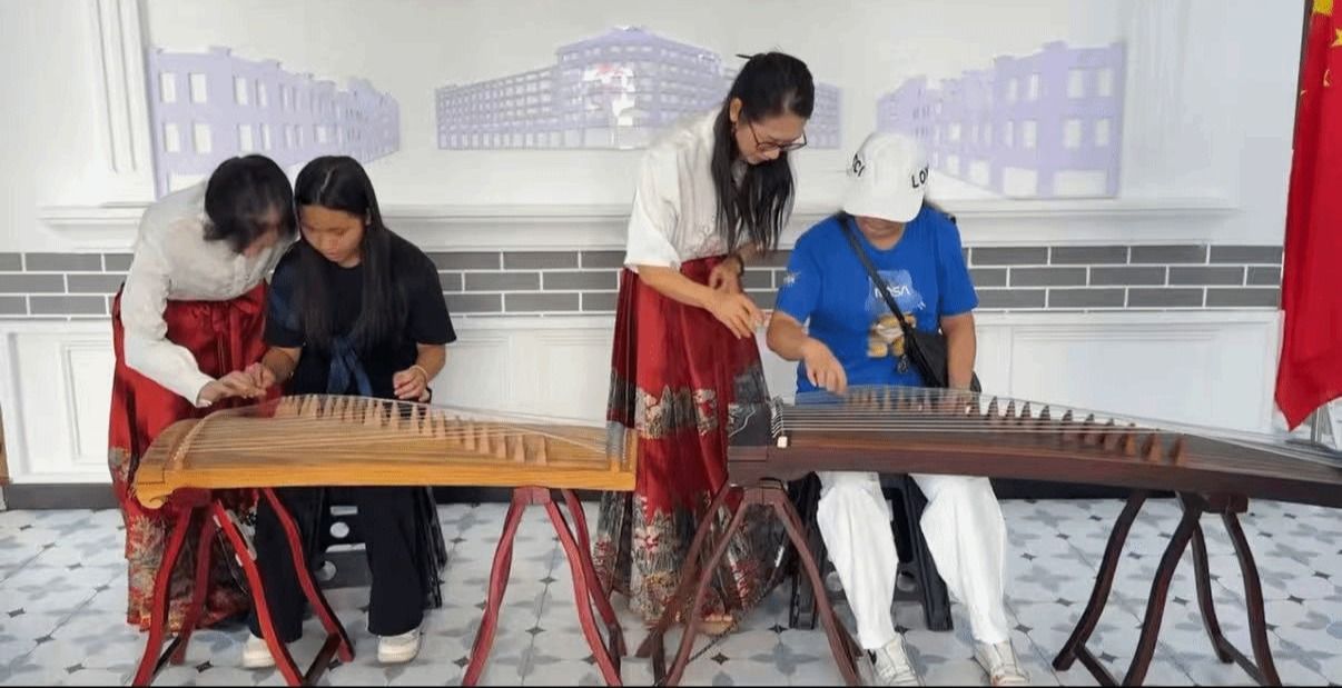 活动特别设置的15分钟古筝体验环节将现场气氛推向高潮。在专业演奏者的指导下,市民们纷纷上前试弹,从最简单的指法开始感受千年乐器的魅力。孩子们好奇地拨动琴弦,长者们重温年轻时的音乐梦想,游客们在百年骑楼的环抱中与中国传统音乐不期而遇。