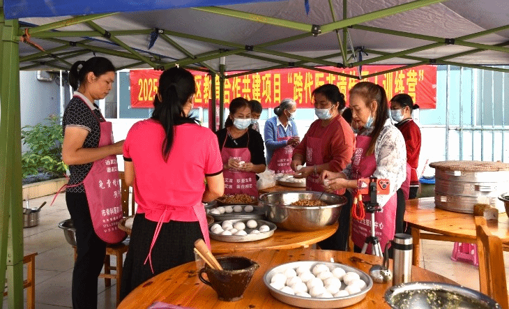 活动现场气氛热烈,社区居民在亲手制作与品味美食的过程中,沉浸式感受非遗文化的深厚底蕴。油茶制作区,捶打声与茶香交织;糍粑制作区,欢声笑语随着糯米香气飘扬,老少搭档默契配合,在揉搓打制中传递着手艺的温度;东龙酸粉与思旺桥头粉的品尝台前更是人头攒动。居民们在酸辣鲜香的地道风味中,不仅体验到非遗美食的独特魅力,也品味着代代相传的文化记忆。