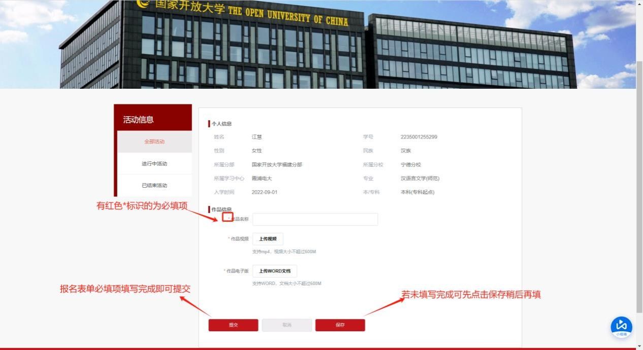 获奖作品将在“国家终身教育智慧教育平台”“国开之声”“国开学生之家”微信公众号等平台展播。