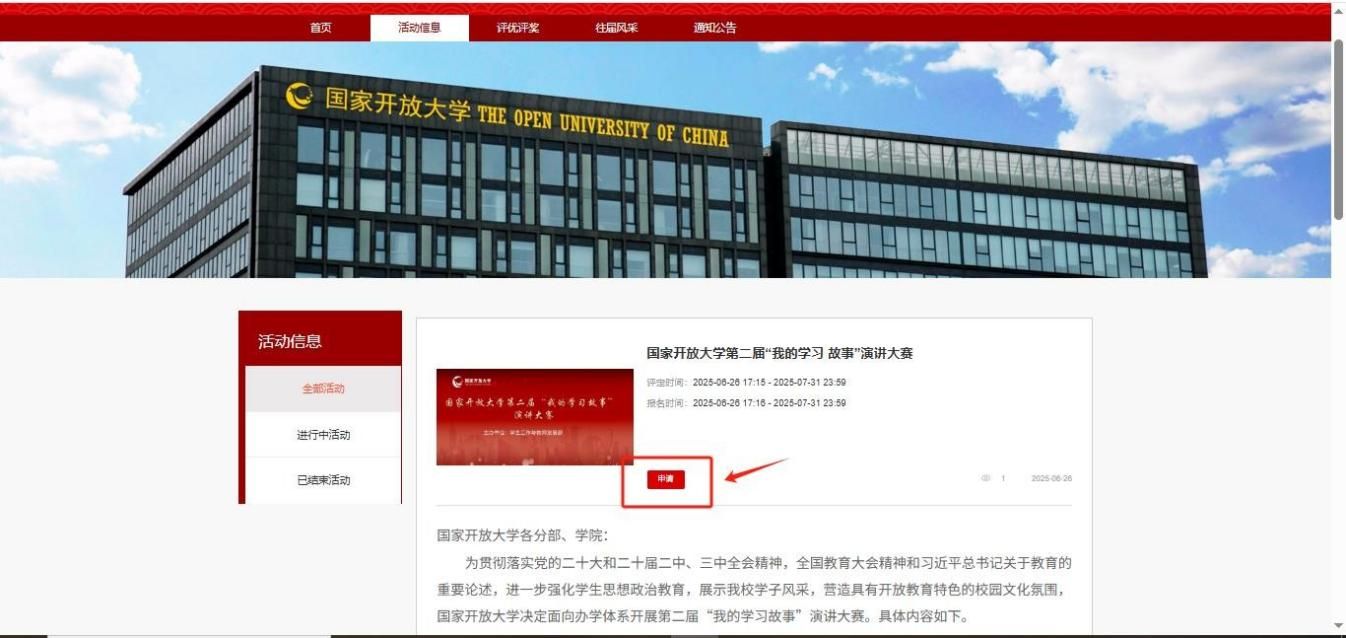 (二)选定活动:在首页【活动信息】板块找到参赛的活动。