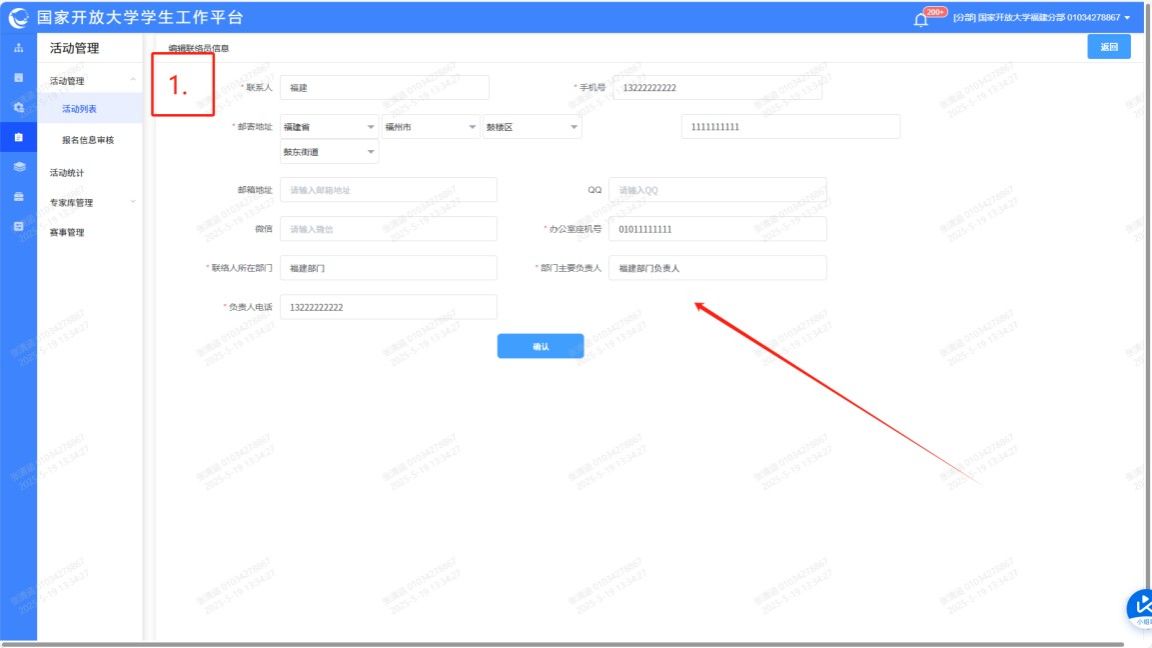 2.完成联络人信息的填写,点击【确认】。