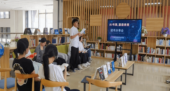 网络与信息中心(图书馆、教育技术中心) 韦武超报道 在这个科技日新月异的时代,人工智能(AI)以其独特的魅力和无限的潜力,正逐步改变着我们的世界。为了更好地了解人工智能的深层含义、前沿发展和日常应用,2025年4月23日第30届世界读书日,图书馆举办“AI书海,智启未来”阅读分享会,在图书馆三楼休闲阅读区举行,吸引了30多名对人工智能感兴趣的老师和学生前来参加阅读分享会。