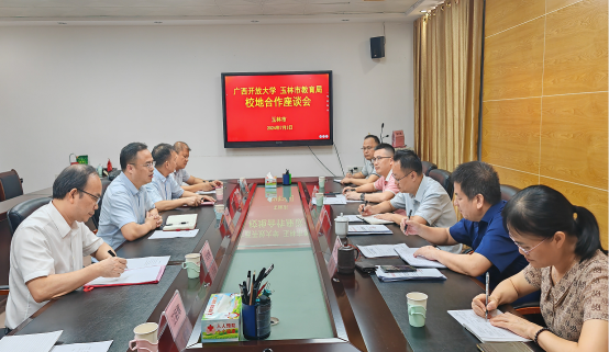继续教育学院 江祖辉 报道 7月3日下午,副校长刘绍英带队赴玉林市教育局开展校地合作调研交流,培训学院、开放教育学院、继续教育学院相关人员参加了调研。