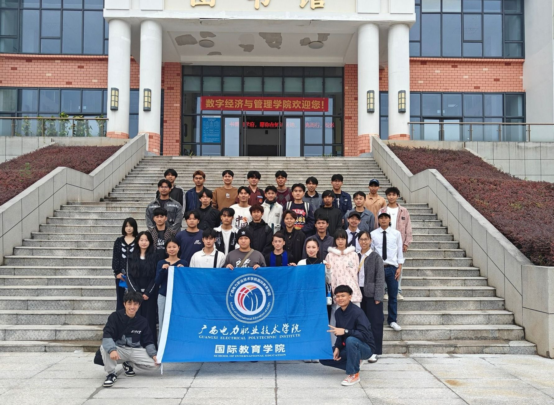 ▲图书馆门前合影(广西电力职业技术学院 杨增耀/摄)