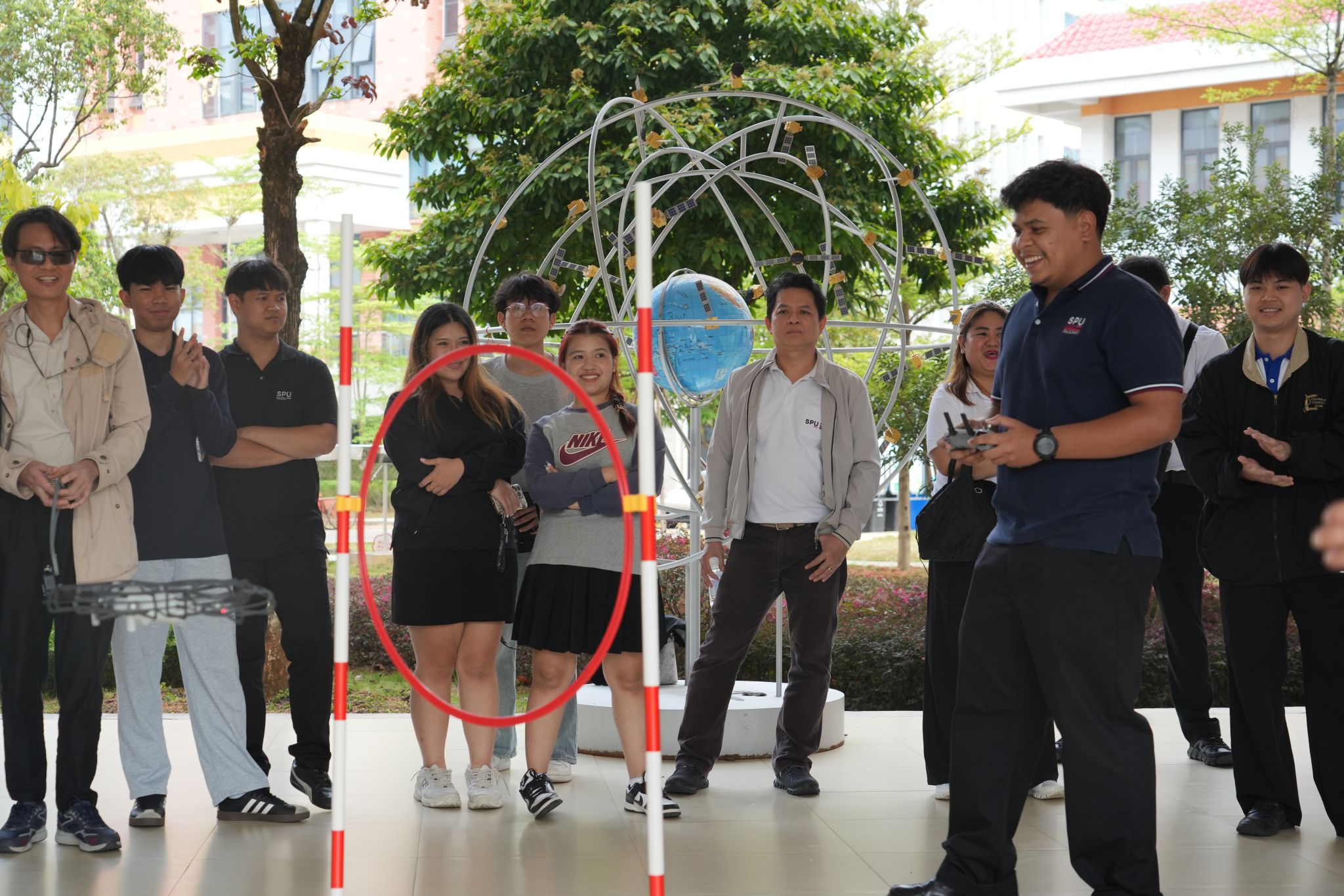 研学期间,我校为泰方师生精心组织了集成电路测试技术培训与无人机综合实训等特色课程。在北斗与通信学院教师与企业导师的指导下,泰国学生亲手操作设备,感受芯片测试在产业链中的“守门人”作用;在墨子楼前,无人机编队飞行演示与操控体验赢得阵阵赞叹。人工智能、北斗应用等前沿技术课程,让泰方师生近距离领略中国职教的创新实力与发展活力