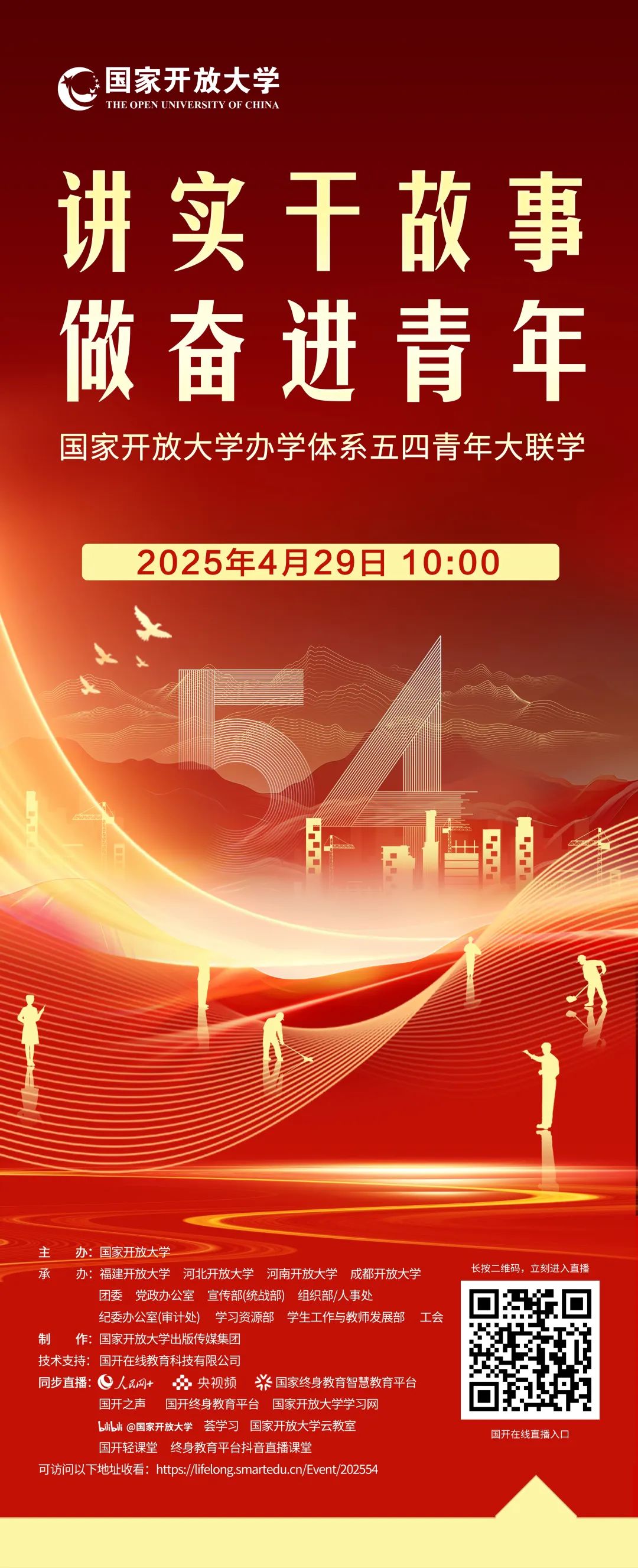 为学习贯彻党的二十大和二十届二中、三中全会精神,学习贯彻全国教育大会精神和团十九大精神,传承和弘扬五四精神,进一步动员国家开放大学办学体系广大青年围绕教育强国建设挺膺担当、团结奋斗,国家开放大学以“讲实干故事,做奋进青年”为主题,在办学体系开展大联学活动。