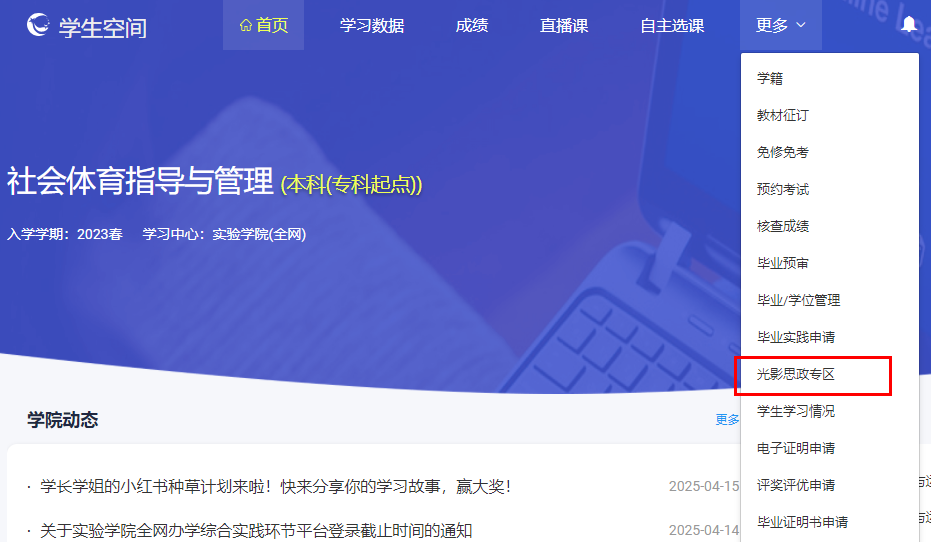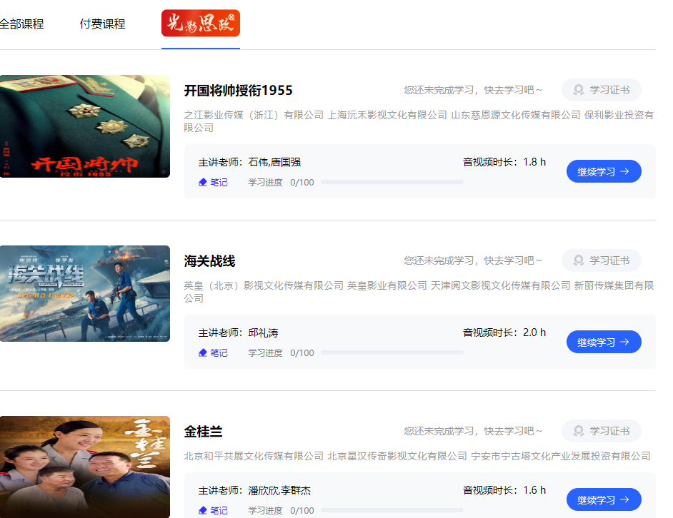 “光影思政”赏学专区由国家开放大学与中宣部电影数字节目管理中心联合推出,上线两年来,提供影片160部,服务百万学生,累计观看时长12万小时。相关学院和分部也积极组织学生进行赏学,并依托专区开展相关主题活动,更好地发挥电影艺术在思政教育和立德树人方面的巨大价值,形成了全国一体化、线上线下相融合,“电影+思政”的协同育人新模式。