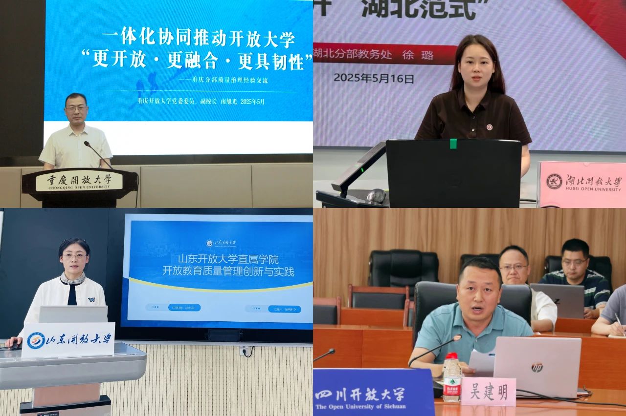 在分部工作交流环节,重庆分部党委委员、副校长南旭光围绕“推动体系重构、深化教学改革、建立闭环机制”分享了重庆分部的质量治理经验;湖北分部教务处副处长徐璐介绍了从远程听评课入手提升开放教育质量的“湖北范式”;山东分部直属学院院长张琳琳介绍了其所在学院层面开放教育质量管理的创新做法与实践效果;四川分部达州开放大学党委专职副书记吴建明分享了市级开放大学紧盯核心环节、协同发力创先争优的经验。