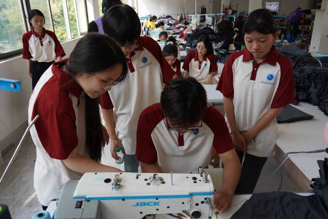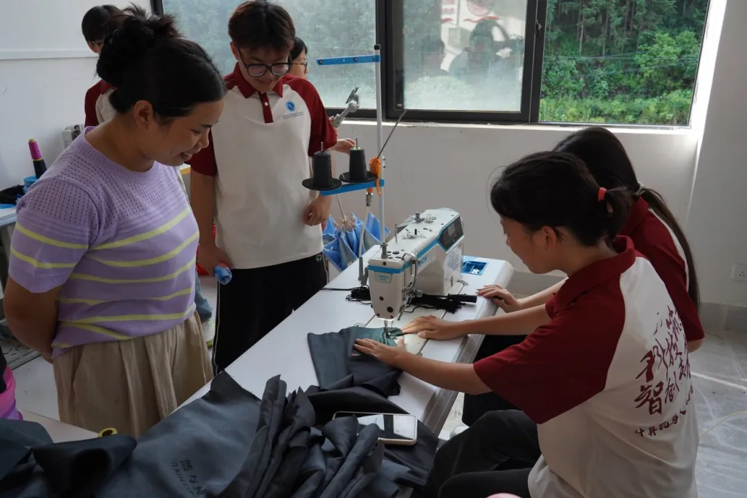 午后,实践团走进东兰县壮锦民族服饰有限公司,自治区级非遗项目“东兰壮族服饰制作技艺”非遗传承人韦玉荣,她为200多名留守妇女提供免费培训和就业岗位的事迹让现场的成员们无不动容,她让指尖技艺化作“家门口的饭碗”,她以非遗技艺传承为纽带,绘就出了民族团结的锦绣华章,以工匠精神点燃了家国情怀。