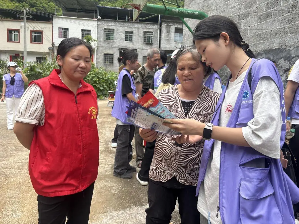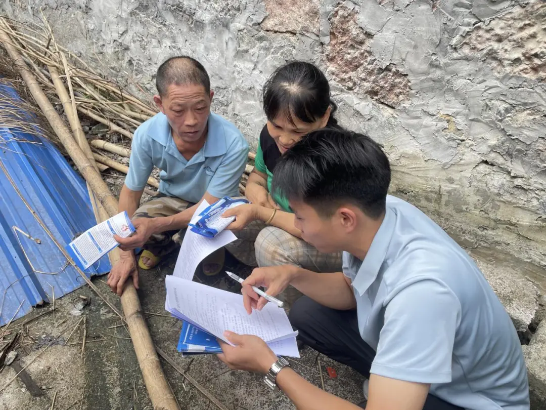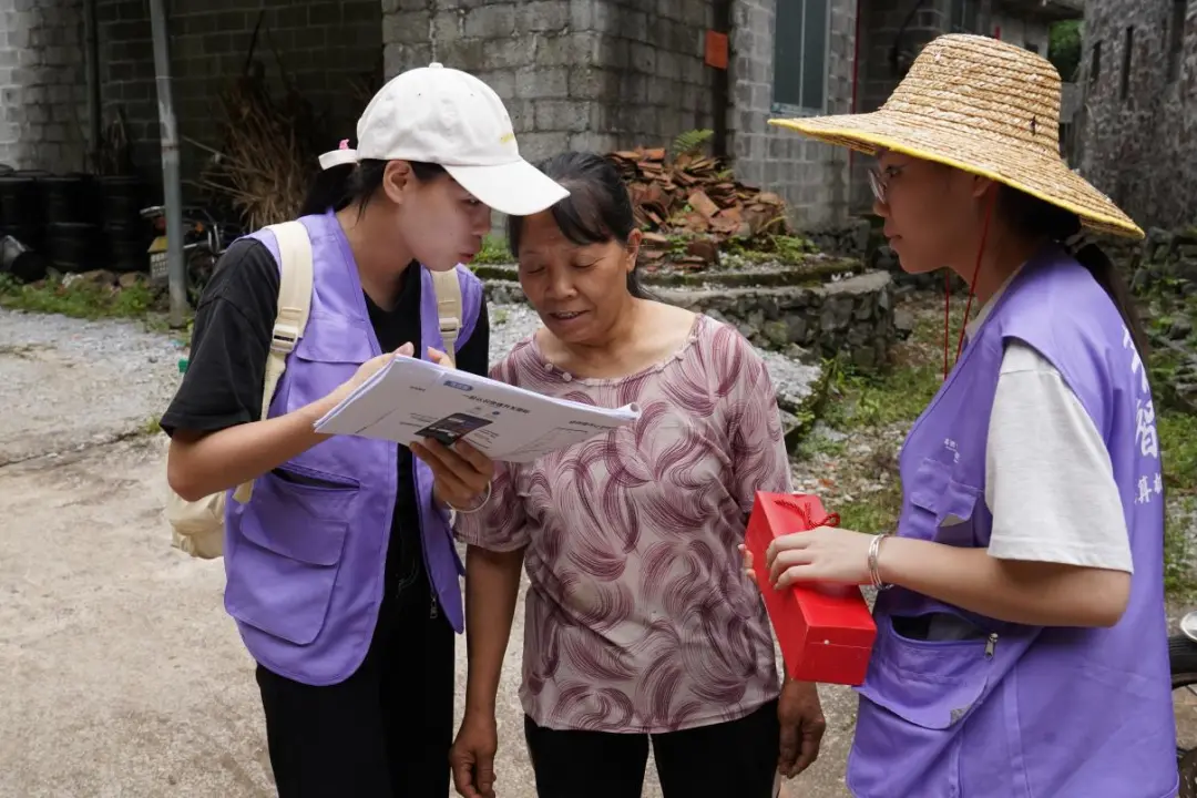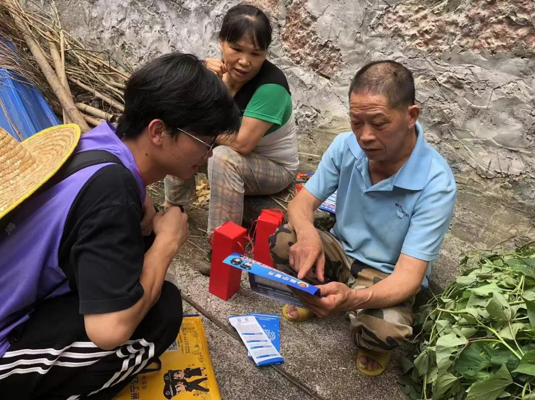 ▲实践团成员为当地居民讲解资助政策