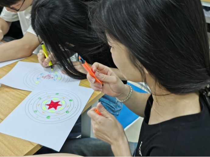 活动现场,学生们在音乐疗愈师的引导下,通过破冰游戏、聆听与诉说、再创造式音乐体验、指导性音乐想象和音乐绘画等环节,沉浸于音乐的疗愈力量中。