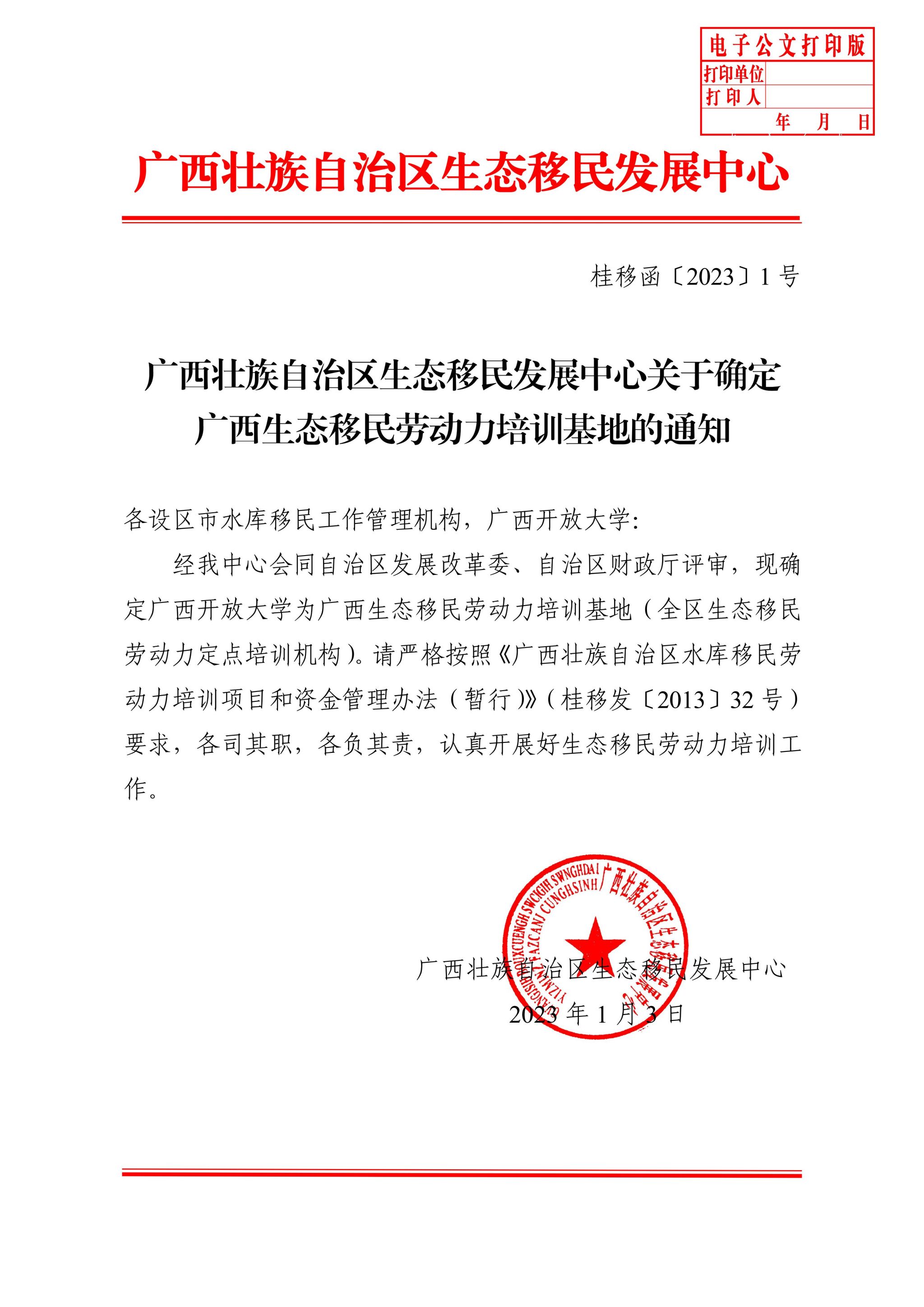 广西壮族自治区生态移民发展中心关于确定广西生态移民劳动力培训基地的通知