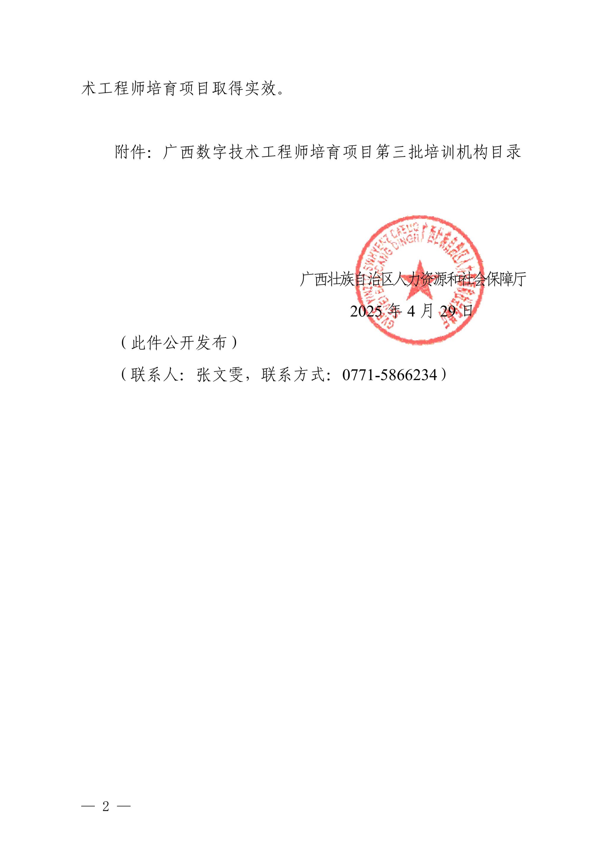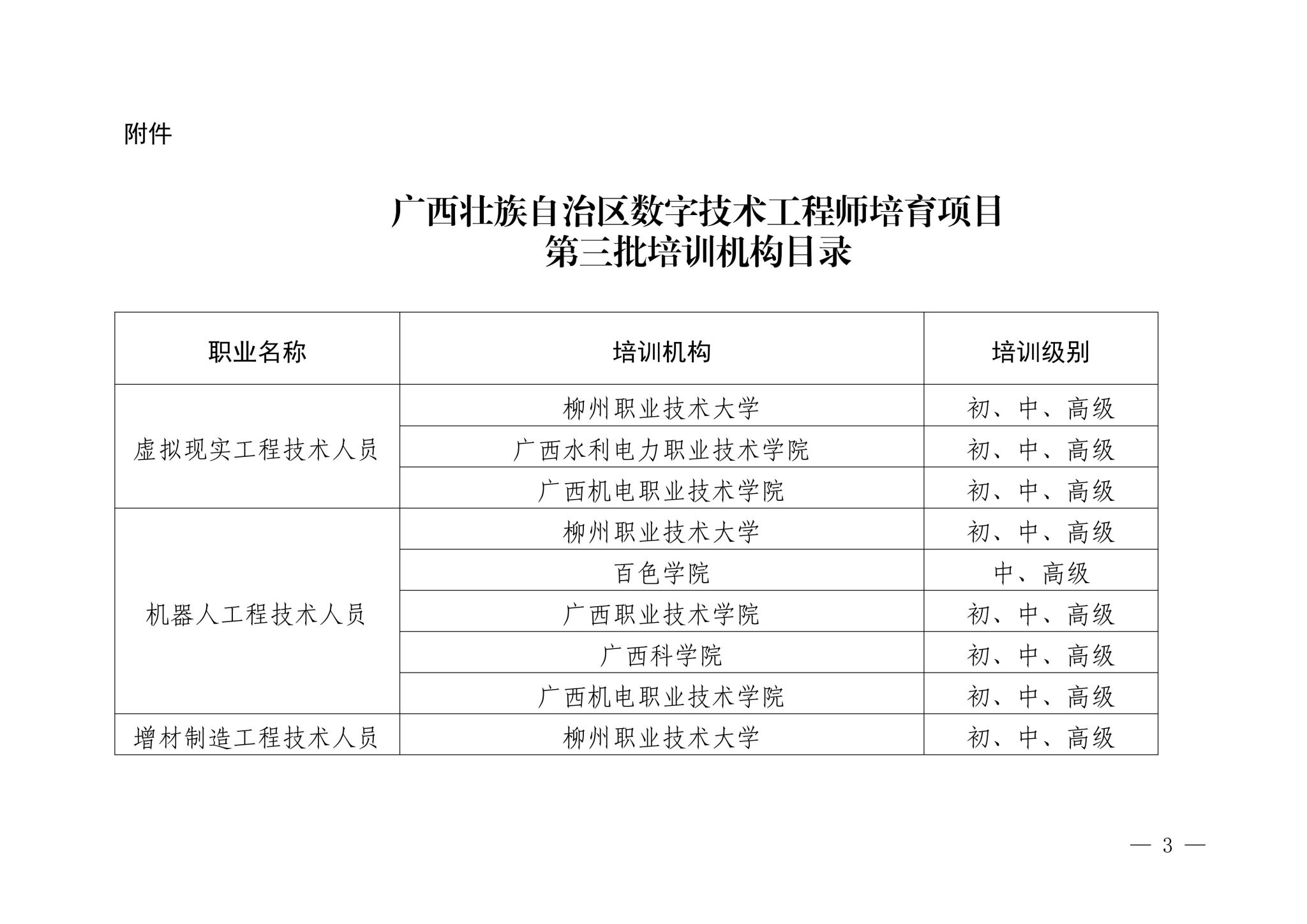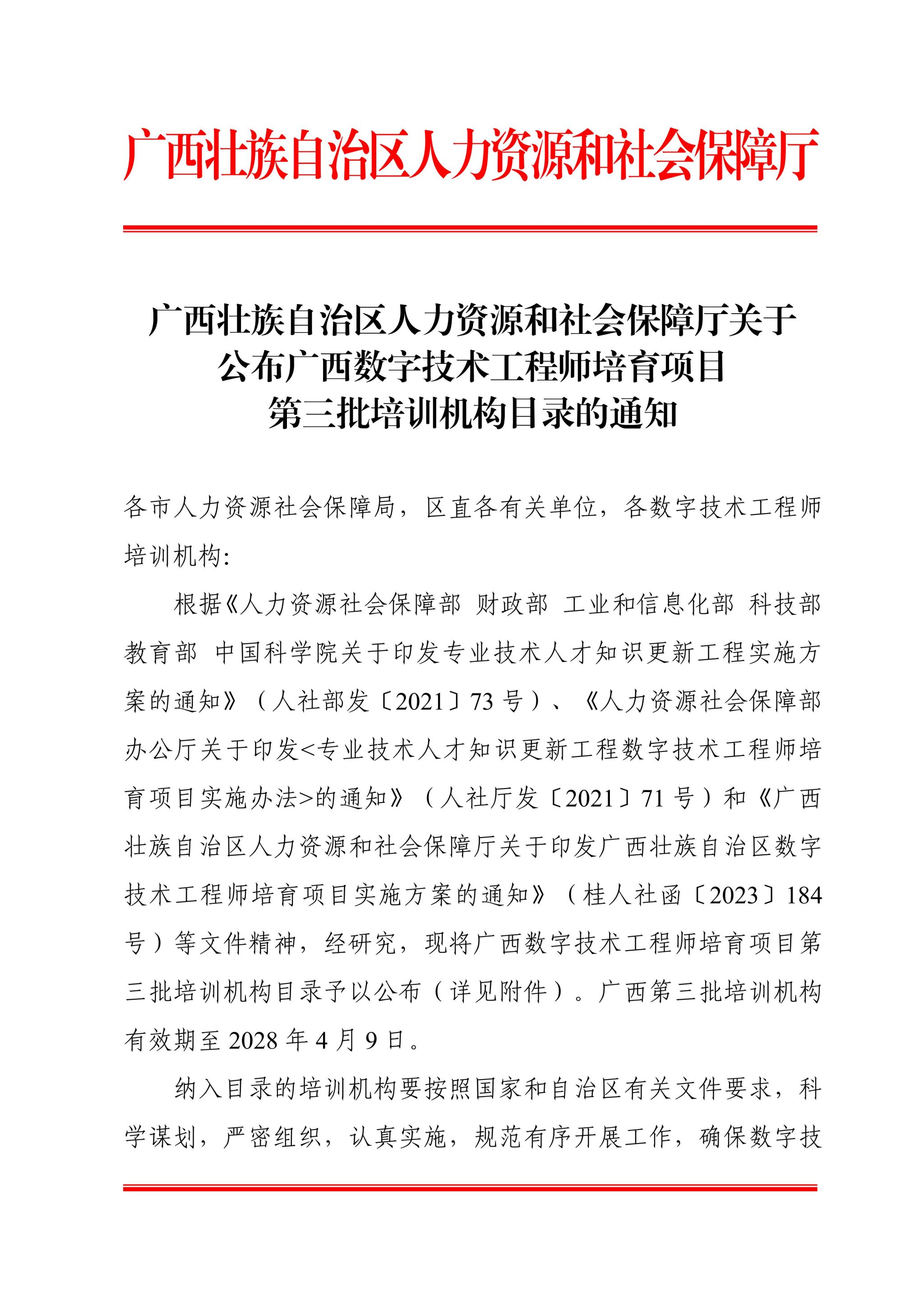 广西壮族自治区人力资源和社会保障厅关于公布广西数字技术工程师培育项目第三批培训机构目录的通知