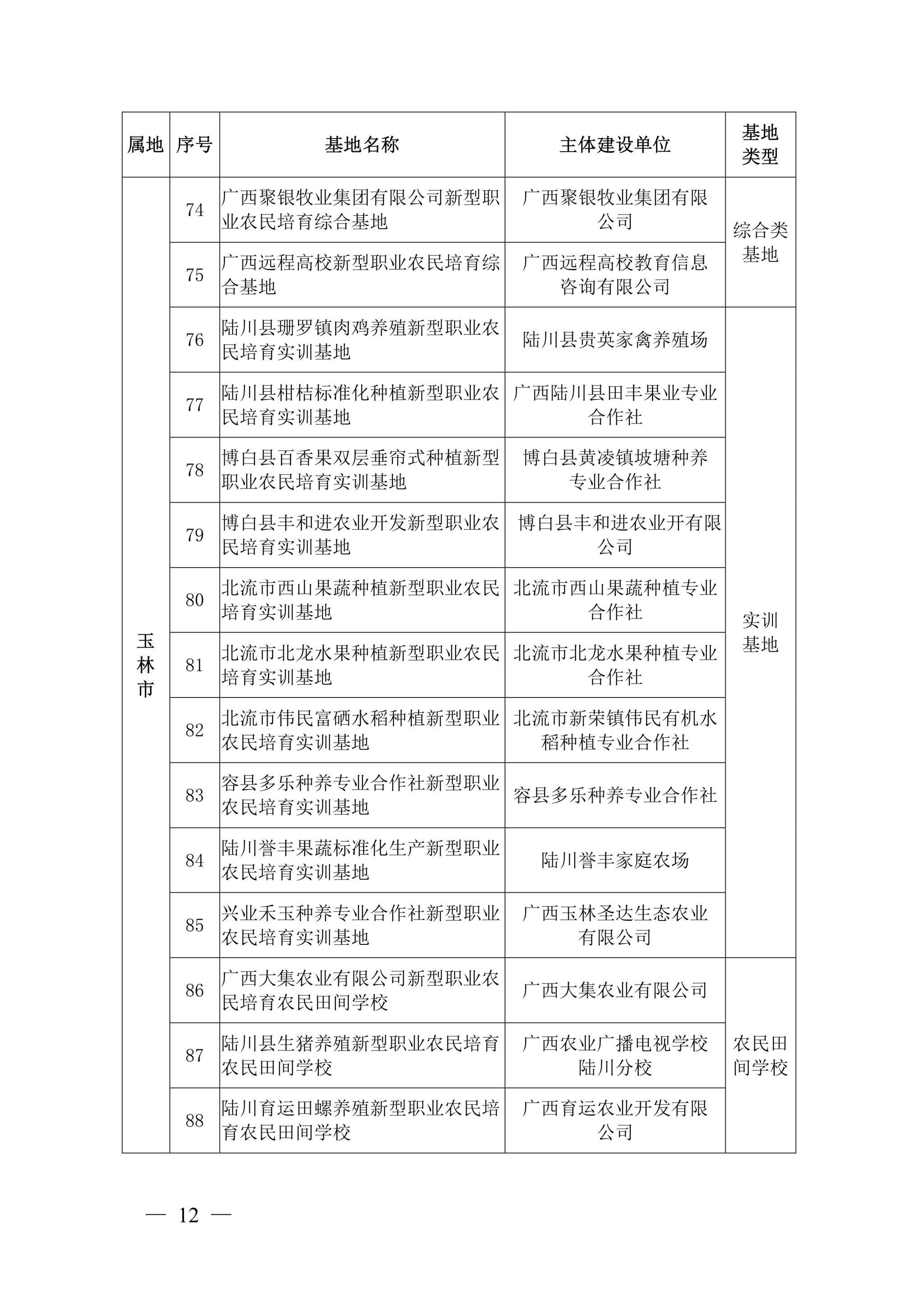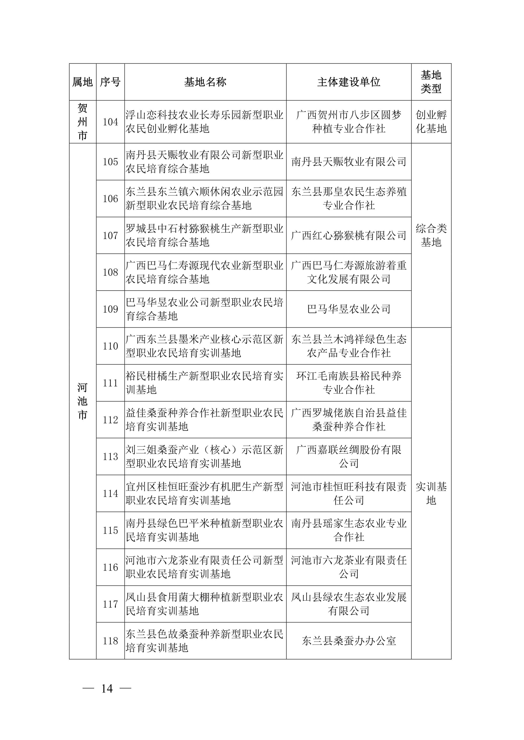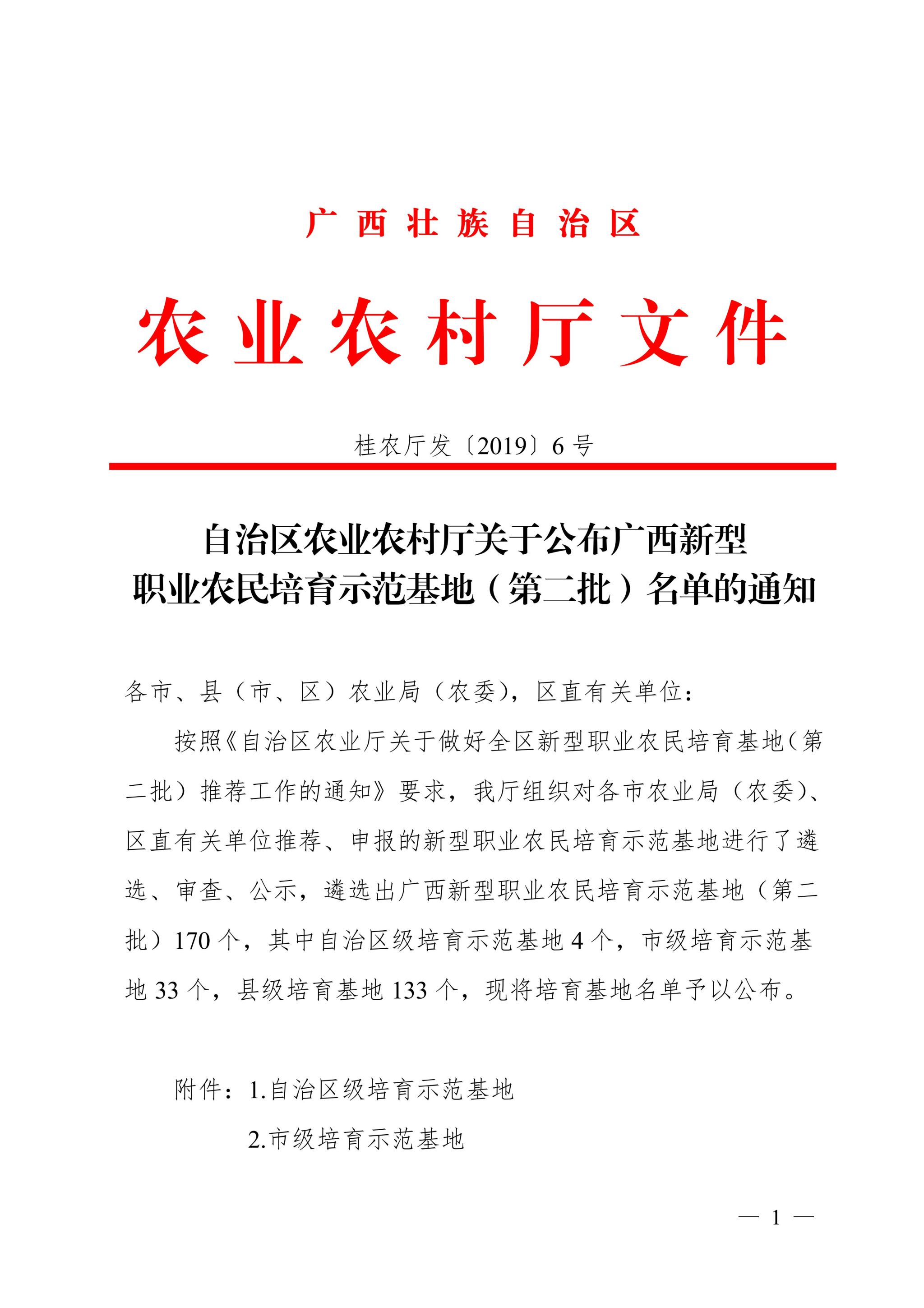 自治区农业农村厅关于公布广西新型职业农民培育示范基地第二批名单的通知