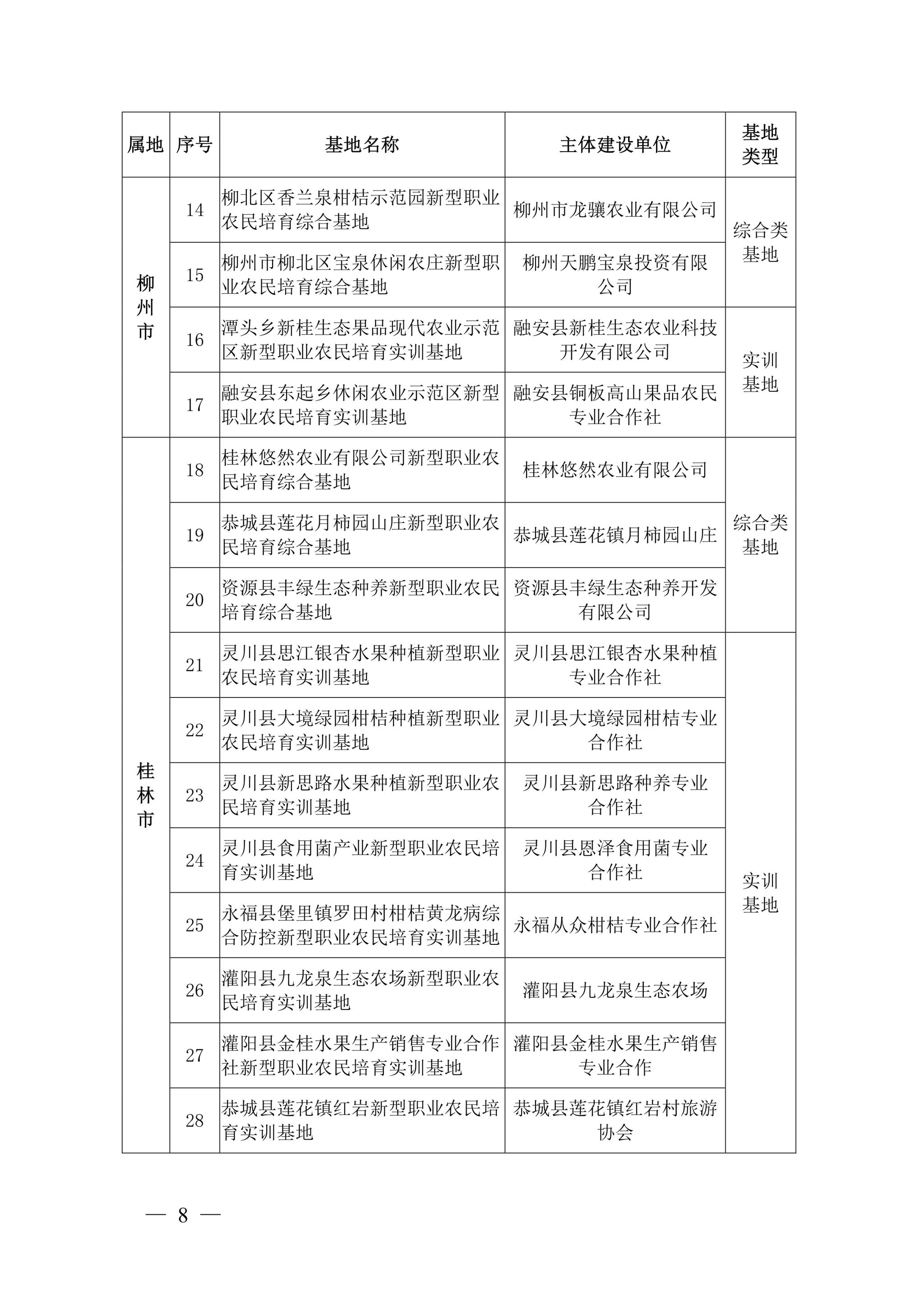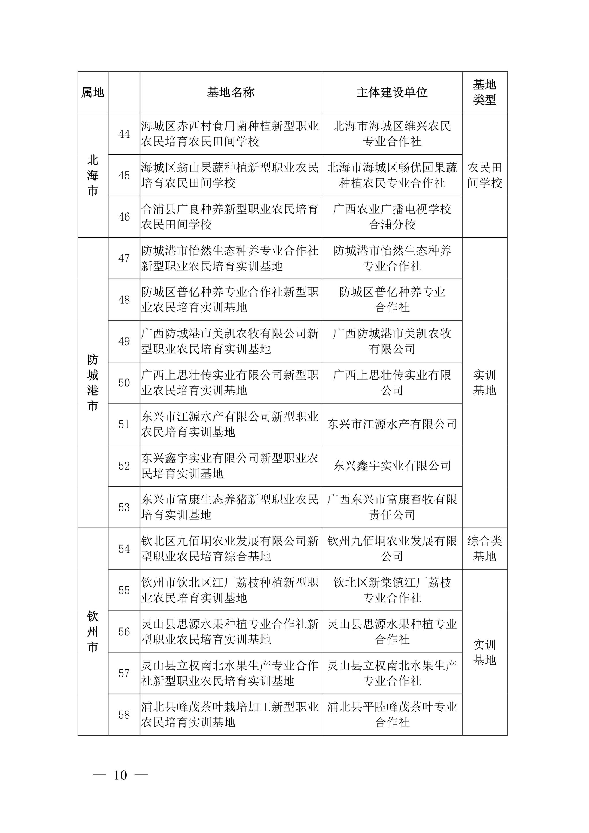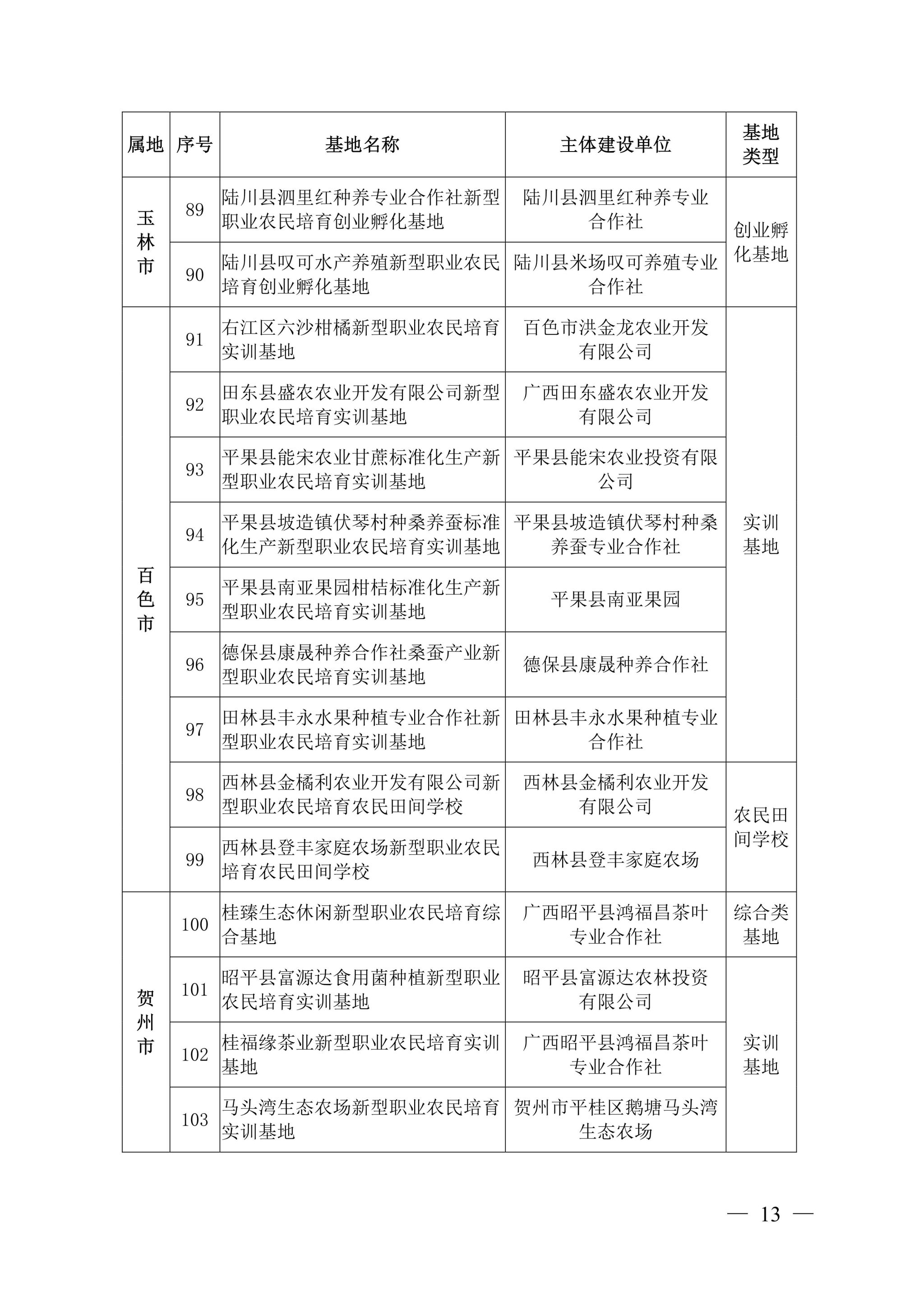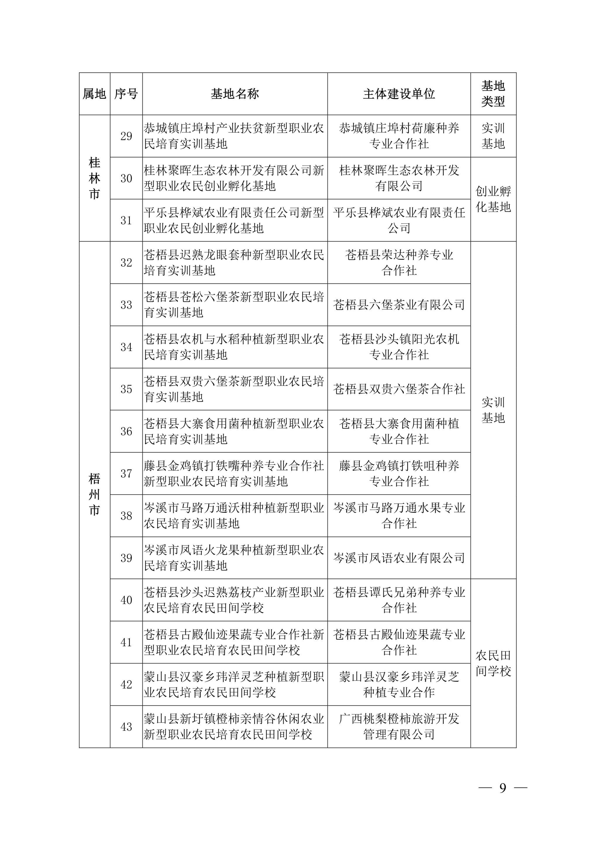 自治区农业农村厅关于公布广西新型职业农民培育示范基地第二批名单的通知