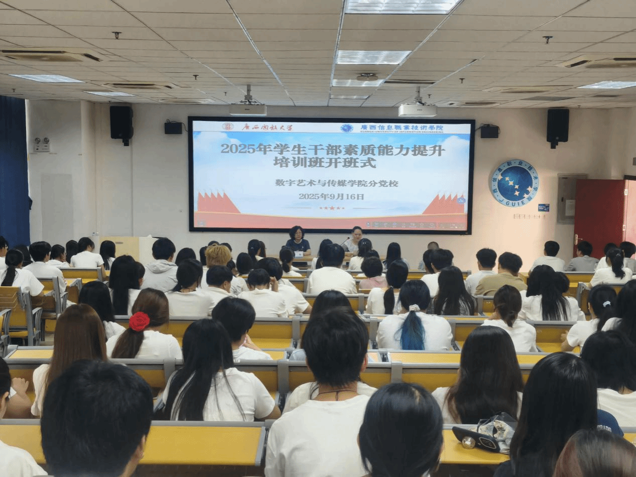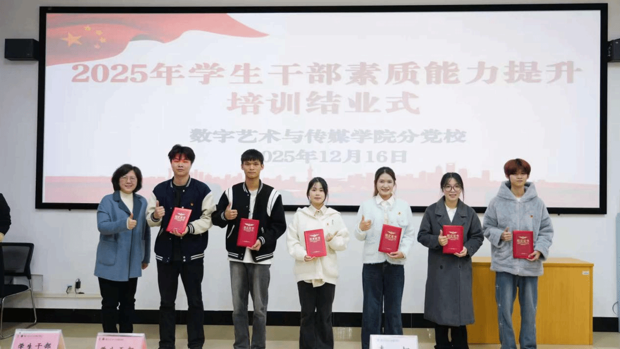 数字艺术与传媒学院 罗先权 徐明姣报道 12月16日下午,数字艺术与传媒学院分党校在五象校区墨子楼举行第一期学生干部素质能力提升培训班结业式。学院党总支书记、分党校校长麦旭作结业讲话,分团委书记吴家媚主持结业式,全体辅导员及2024级、2025级班级的180余名学生干部、入党积极分子参加,为期两个半天的培训圆满收官。