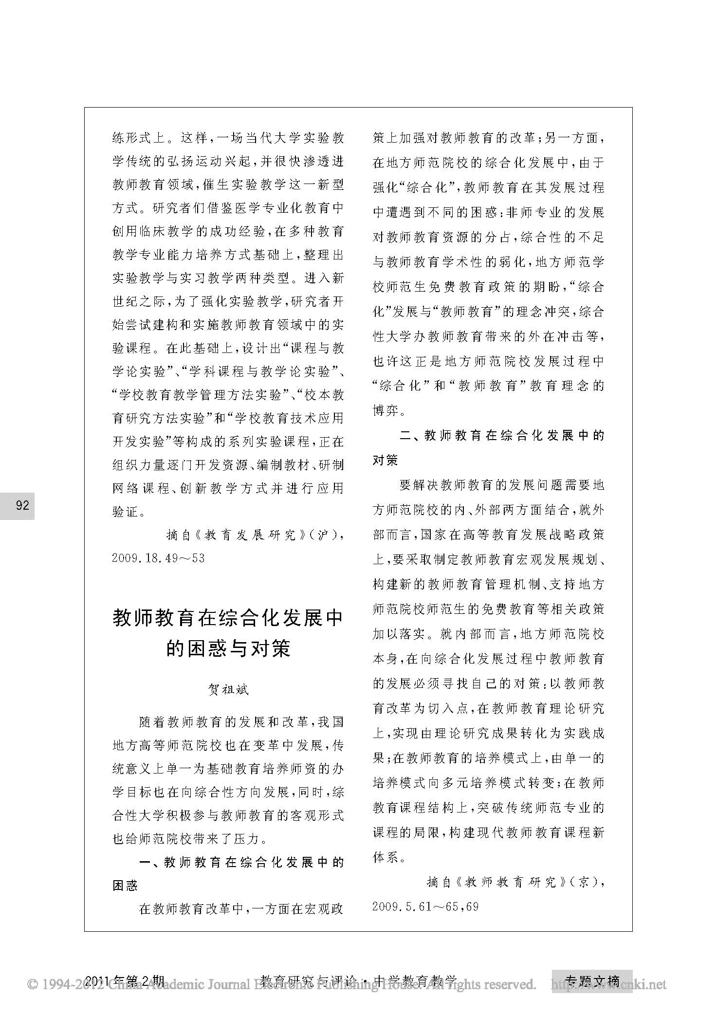 教师教育在综合化发展中的困惑与对策