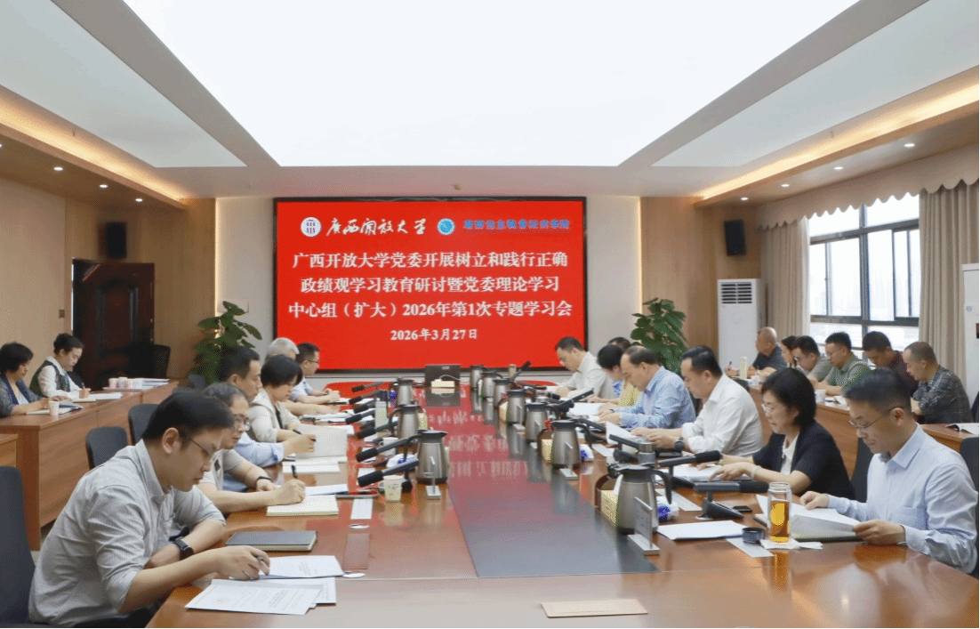 党委宣传部 报道 3月27日,学校党委开展树立和践行正确政绩观学习教育读书班暨党委理论学习中心组(扩大)2026年第1次专题学习集中研讨,深入学习贯彻习近平总书记关于树立和践行正确政绩观的重要论述,认真贯彻落实习近平总书记关于广西工作论述的重要要求,深刻把握“政绩为谁而树、树什么样的政绩、靠什么树政绩”这个根本问题,进一步增强树立和践行正确政绩观的政治自觉、思想自觉、行动自觉,为推动学校“十五五”良好开局奠定坚实思想基础。学校党委书记邹勇主持会议并讲话。